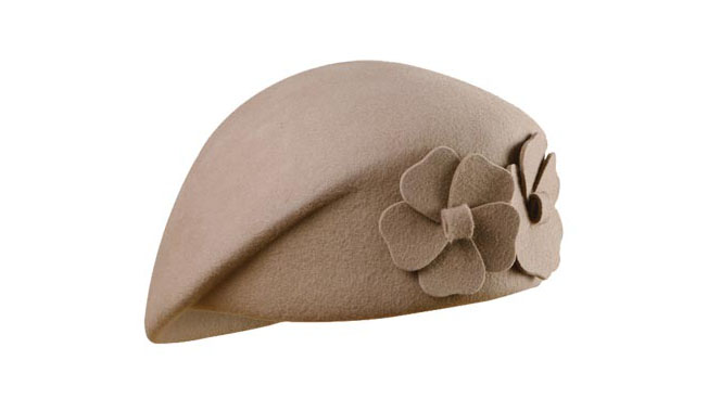 100%純羊毛的帽子,經典的造型,兩朵簡潔的小花,栩栩如生,讓帽子變得不再沉積。