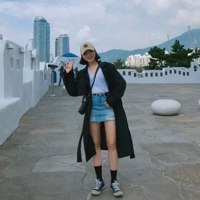 下搭牛仔短裙或者運動風的短裙,是比較青春減齡的,也很適合學生黨